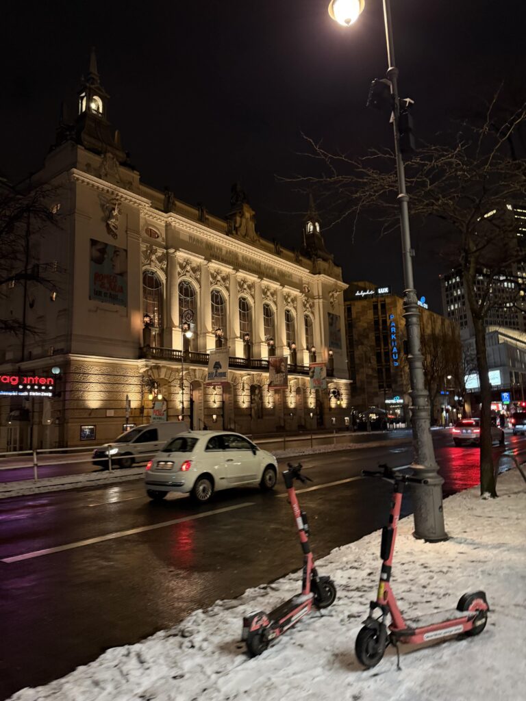 Die letzten Sachen noch in den Koffer gequetscht – und wieder ging das Tetrisspielen schon vor Abreise los, ob alles überhaupt mitkommen kann. Vollbepackt trafen sich alle gegen 8.30 Uhr in der Cafeteria, um zunächst noch einmal belehrt zu werden, dies auch zu unterschreiben und sich mental auf die „Bildungsfahrt“ vorzubereiten. Nach dem Einladen der Koffer in den Bus teilten wir uns in zwei Gruppen: Sieben Schülerinnen sowie Frau Ko. nahmen einen Transporter und die anderen in Begleitung von Frau Br. und Herrn Mh. den Reisebus, deren Räder sich gegen 9.00 Uhr nun endlich ins Rollen versetzten. Musik hören, Bücher lesen oder wie typisch die eigenen Lieblingssnacks verspeisen – Jeder überbrückte die Zeit ganz individuell bis zur kleinen Pause um 11 Uhr. Ab dort standen jetzt noch gute 1,5h an, die allerdings auch sehr schnell verstrichen. Angekommen an der Unterkunft und eine kurze Erklärung bezüglich der Schlüsselausgabe für unsere Zimmer später, konnten diese bis 14.00 Uhr zunächst bestaunt werden, auch wenn die Flure teilweise an Backrooms oder eine Gruselanstalt erinnern. Ab 14 Uhr teilte sich unser Jahrgang in die einzelnen Tutorien und gemeinsam mit einem Guide stand ab nun eine 1,5 stündige Stadttour an. Zunächst liefen wir dafür in Richtung Altmarkt, wonach wir das Staatsschauspiel bestaunten. Auf dem dann folgenden Theaterplatz erhielten wir schon einmal einen kleinen Vorgeschmack für die Semperoper, die wir heute Abend noch einmal zu sehen bekommen. Nach der Zerstörung der Semperoper sei diese wieder aufgebaut und rekonstruiert worden, so die Stadtführerin. Auch zu erkennen war die Reiterstatue, zu deren künstlerischen Historie wir ebenfalls viel Interessantes erfuhren. Auch die Hofkirche, die für die damalige Herrschaft und Kurfürsten erbaut wurde, sowie der Kulturpalast ließen uns durch ihre künstlerischen Elemente noch tiefer in die Geschichte Dresdens sinken. Eine Abratung für den einen Currywurst-Stand haben wir von ihr übrigens auch dazu bekommen, was uns alle zum Schmunzeln brachte. Unseren vorletzten Halt machten wir beim Schlossplatz, zu dessen dort befindlichen Schloss sowie Pferdestall wir ebenfalls spannende Fakten erfuhren. Man vermute, dass die Rampe, die in das zweite Geschoss des Pferdestalls führt, vielleicht zur Besattelung der Pferde genutzt worden sei, so unser Guide weiter. An der Frauenkirche beendeten wir nach einem kurzen Blick ins Innenschiff die Tour gegen 15.30 Uhr und bekamen bis zum Abendessen um 18.30 Uhr erst einmal Freizeit, um zunächst eigenständig u.a. zum Hostel zurückzukehren. Nach dem Abendessen, das eher eine überschaubare Auswahl bereithielt, liefen wir nach weiterer freier Zeit, die der Großteil des Jahrgangs zum Hide-and-Seek-Spielen nutzte (der Gewinn solle wohl ein Döner gewesen sein), gegen 21 Uhr eben zur Semperoper und durften uns ganz positiv von der Schönheit dieser bei Nacht überraschen lassen. Nun standen weitere 45min an, in denen wir eine kleine Führung erhielten. Anschließend begaben wir uns gut ausgepowert gegen 23 Uhr wieder zurück und jedes Zimmer ließ den heutigen Tag ganz individuell ausklingen.