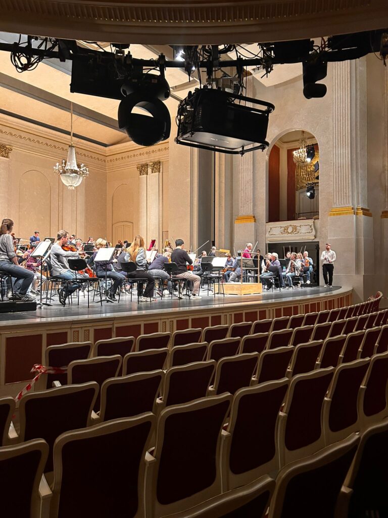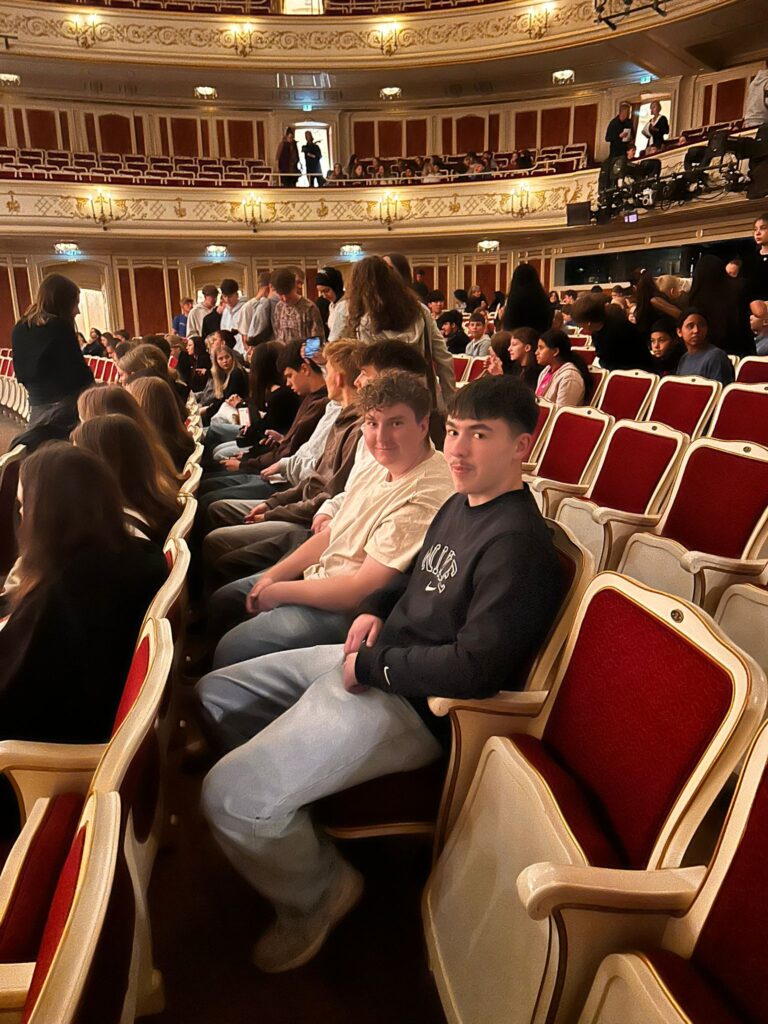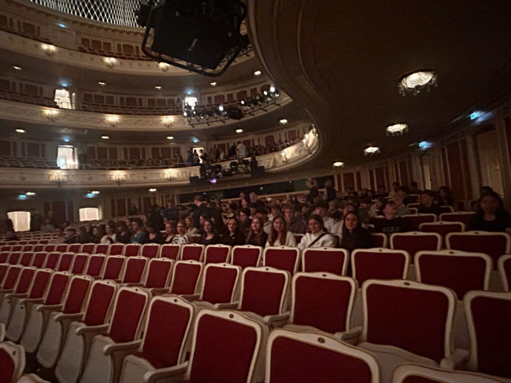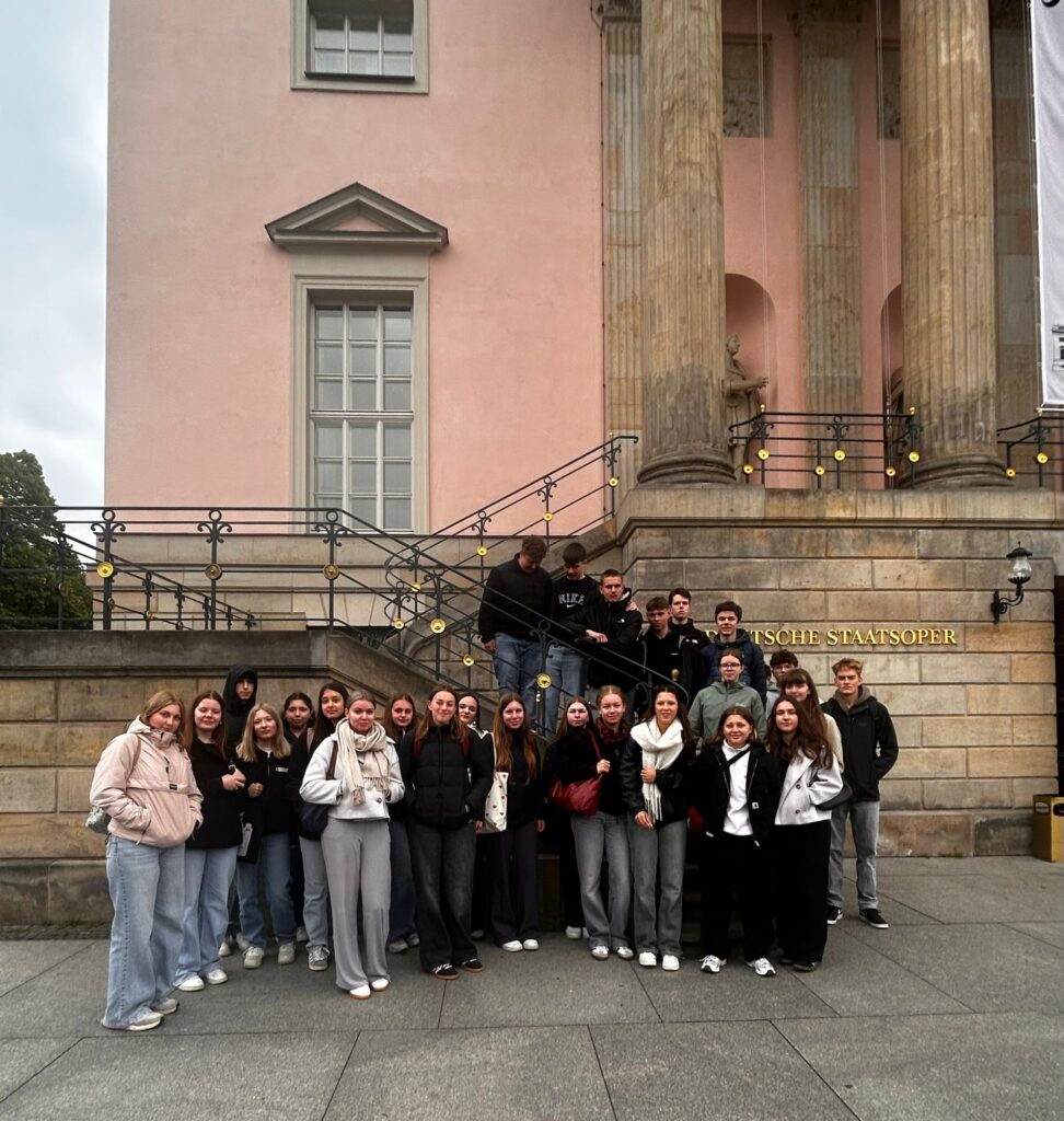 Zunächst versammelten wir uns alle gegen 8.00 Uhr an der Schule und fuhren zusammen mit dem Bus, der um 8.15 Uhr mit ein wenig Verspätung eintraf, in Richtung Berlin. Ganze eineinhalb Stunden hieß es nun zu überbrücken, die aber durch gute Gespräche, Musik aus der eigenen Playlist oder einem Buch gut zu überstehen waren. Angekommen in Berlin, setzte uns der Bus ein Stück von der Oper entfernt ab und wir liefen den Rest zusammen. Sehr zur Freude aller machten sowohl die zehnte als auch die elfte Klasse danach ein getrenntes Bild mit der Staatsoper im Hintergrund. Eigentlich standen uns vor Beginn der Generalprobe noch gute dreißig Minuten zur Verfügung, allerdings begaben wir uns aufgrund der Kälte bereits in das Gebäude. Nach Abgeben der Taschen, deren Größe über A4 betrugen, sowie Jacken, wurden noch die letzten Bilder der sehr schönen Inneneinrichtung geschossen, bevor wir dann in den Saal gingen. Während der Probe war zwar das Fotografieren nicht gestattet, aber das gestaltete das Ganze nicht unschöner, sondern schaffte auch dem Orchester sowie dem Dirigenten einen ungestörten Raum zum Proben. Was alle jedoch noch nicht wussten, war, dass wir uns am besten das, was die Frau am Anfang zum Leben des Komponisten erzählte, lieber hätten merken sollen, aber dazu gleich mehr. Auch der Dirigent erzählte zunächst einiges über sich selbst und im Anschluss begannen sie einige Teile des Stückes und dann die ganze sechste Sinfonie für die am Abend stattgefundene Aufführung zu üben. Nach einem kräftigen Applaus sammelten wir uns auch bereits wieder draußen und sprachen eine Zeit ab, an der wir uns wieder am Bus treffen sollten. Nach einer kurzen Erkundungstour der nicht mehr ganz so unbekannten Stadt Berlin, fuhren wir auch wieder mit ein wenig Stau zurück zur Schule, an der wir gegen 16.00 Uhr eintrafen.