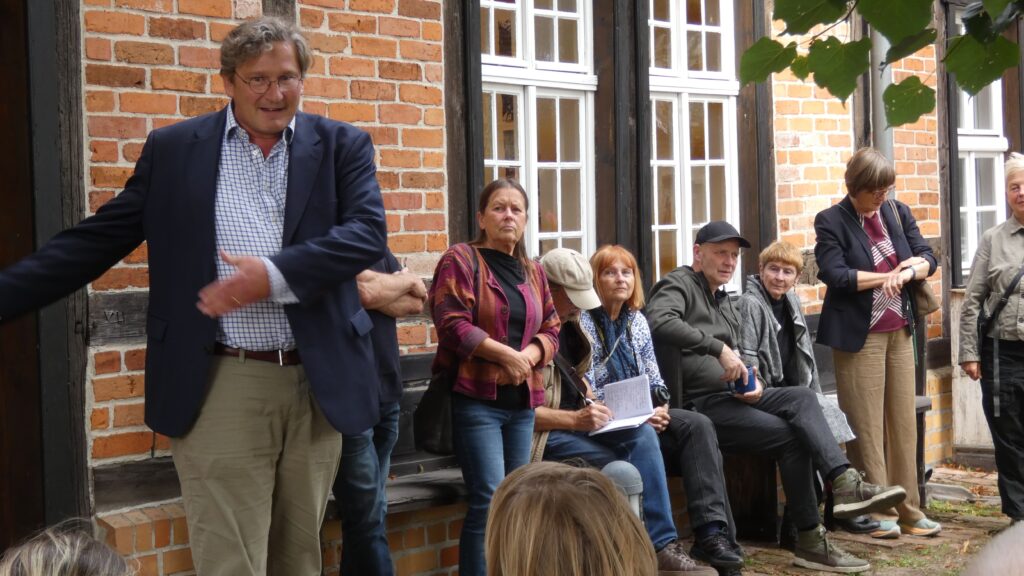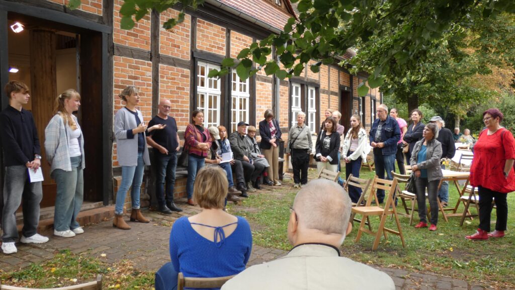 Im Zentrum des Schulhofes befanden sich „die Frühlingszeit Maler“ und „Perlwitz“, welche sich mit Farben, Polsterungen und Bodenbelägen befassten. Gleich daneben hämmerten die Schüler:innen auf Dachplatten von Dachbau Lutzke herum. Einen großen Sicherungsschrank gab es bei „RHS Automatisierungstechnik GmbH“ zu bestaunen, gefolgt von dem „Gesche Brunnenbau“, wo es nebenbei noch Informationen zu Wärmepumpen gab. Die Mitarbeiter:innen des Agravis-Betriebes kamen sogar mit einem Traktor auf den Schulhof, bei dem Interessierte Radmuttern nachziehen und auch ihr Glück beim Basketball ausprobieren konnten. Vor der Schule hatte der Friseurbetrieb „Schwefel-Friseure“ Perücken zum Stylen bereit. Währenddessen gab es bei „Elektroinstallation-Christian Büch“ Werkzeuge zu bestaunen, die in einem kleinen Quiz einzuordnen waren. Daneben gab die „Agentur für Arbeit“ Auskunft über die weiteren Zukunftschancen, die die Welt bietet. Außerdem stellte das Bestattungshaus Oßwald einen Sarg zu Verfügung, den die Besucher:innen verschönern, aber auch einmal ausprobieren konnten.
